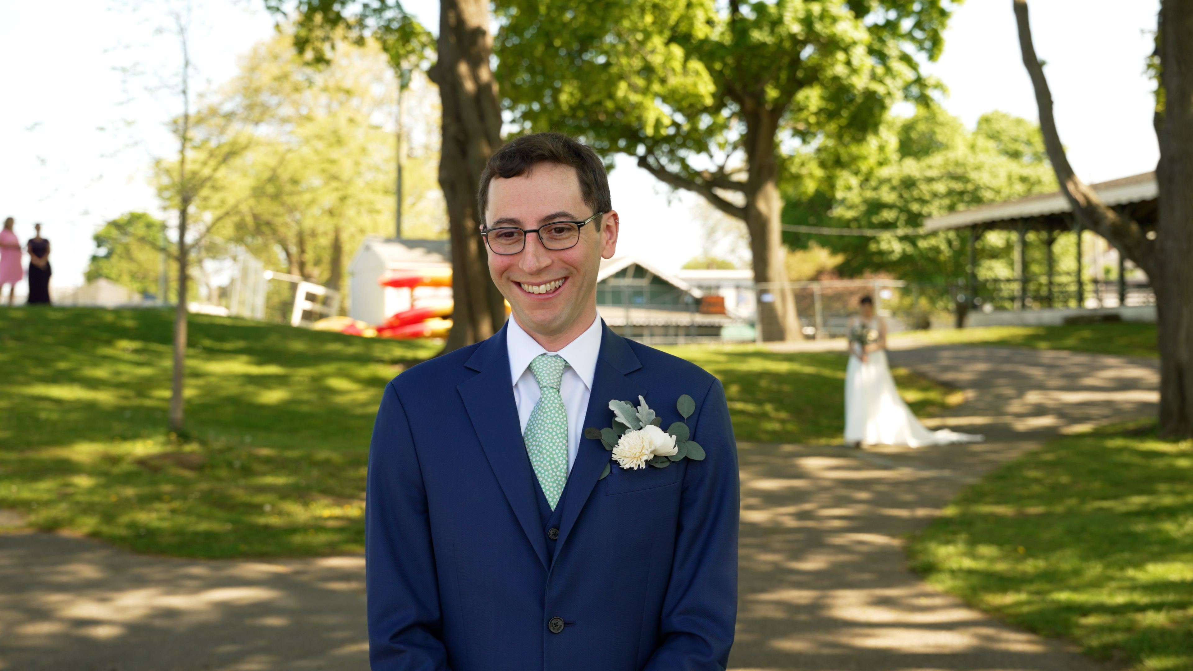 Their first look at Salem Willows Park becomes the calm before everything kicks into high gear. Surrounded by the water and trees, they get a few minutes alone where everything else disappears.
